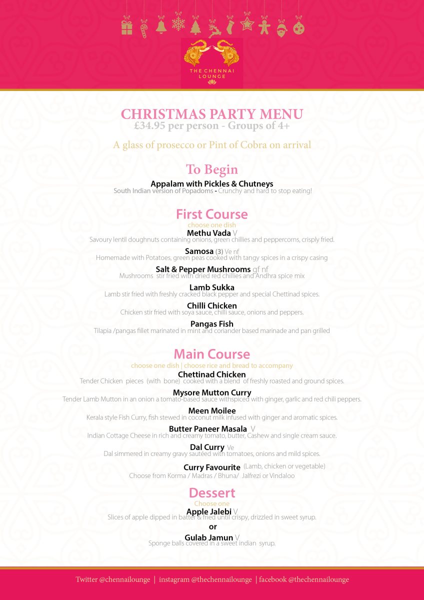 The Chennai Lounge Southampton is now taking bookings for Christmas Partys for 1st November to 24th December 2025.